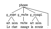 La figure ci-dessous explicite la structure syntaxique de la première phrase d'après les règles de grammaire expliquées ci-dessus :