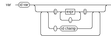 Pour accéder à une variable dans un programme, il suffit de mentionner son identificateur. Cependant, les types composés permettent de définir des variables complexes : ainsi, un tableau contient plusieurs éléments, et un enregistrement contient des champs. Il est possible de combiner ces types, et d'avoir ainsi un tableau d'enregistrements ou un enregistrement dont certains sont des tableaux, etc. La syntaxe de l'accès aux variables permet de décrire comment dénoter les éléments de tableaux (t [i]) et les champs d'enregistrements (c.im) et comment combiner ces notations. En Pascal, on a la syntaxe (incomplète) suivante :