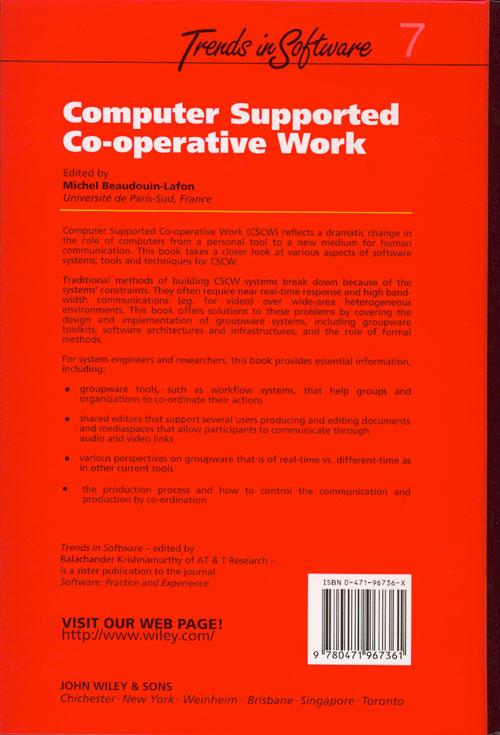 This page contains the full text of the book in PDF. Since the book is now out of print, the publisher has allowed me to put its content on my personal web page. The material on this page is (c) Copyright 1999, John Wiley & Sons Limited and is reproduced by permission. This permission covers use of the material on a read-only basis. This means that you can download the files for your own personal use or for class use, but you cannot re-distribute them to others nor put them on a server. Please contact me if you have any question. If you want to cite the book or one of its chapters, please see the references page. Here are scanned images of the front cover and back Cover.