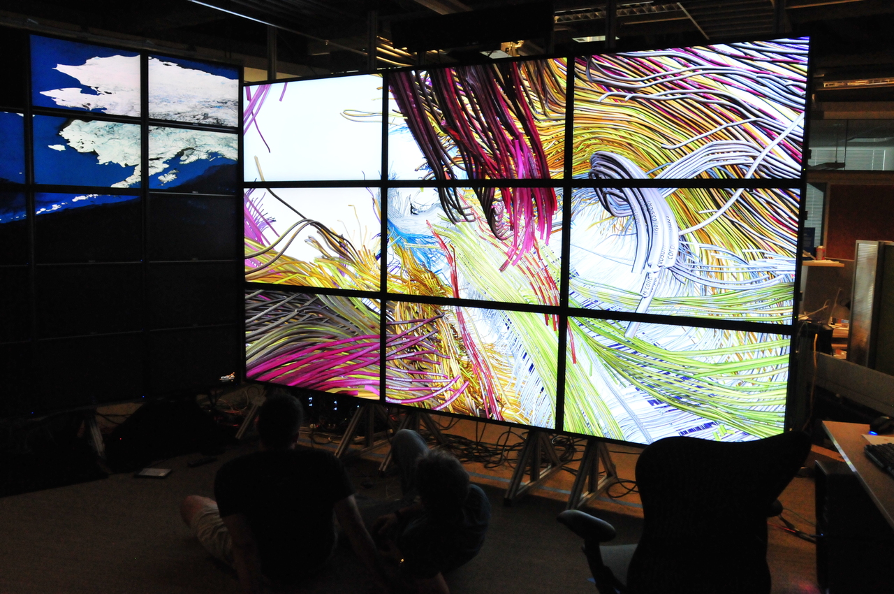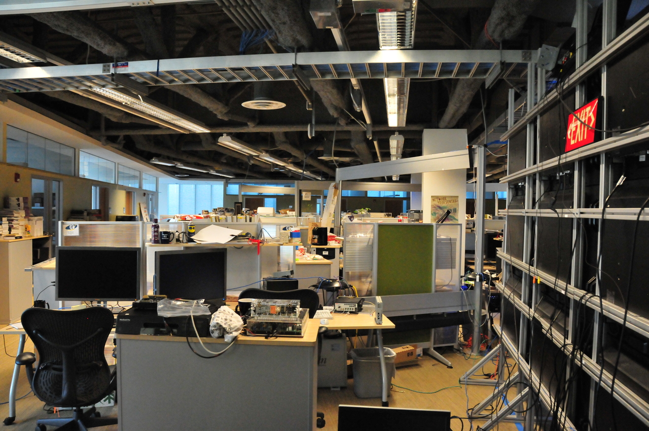 The back of the HiPerSpace wall. The monitors are attached to a fixed structure. [DSC_3350]
