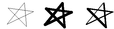 L'algorithme devra également réaliser le clipping de la forme sur une zone rectangulaire. La figure ci-dessous montre le tracé (approximatif) d'une étoile avec les deux pinceaux ci-dessus.