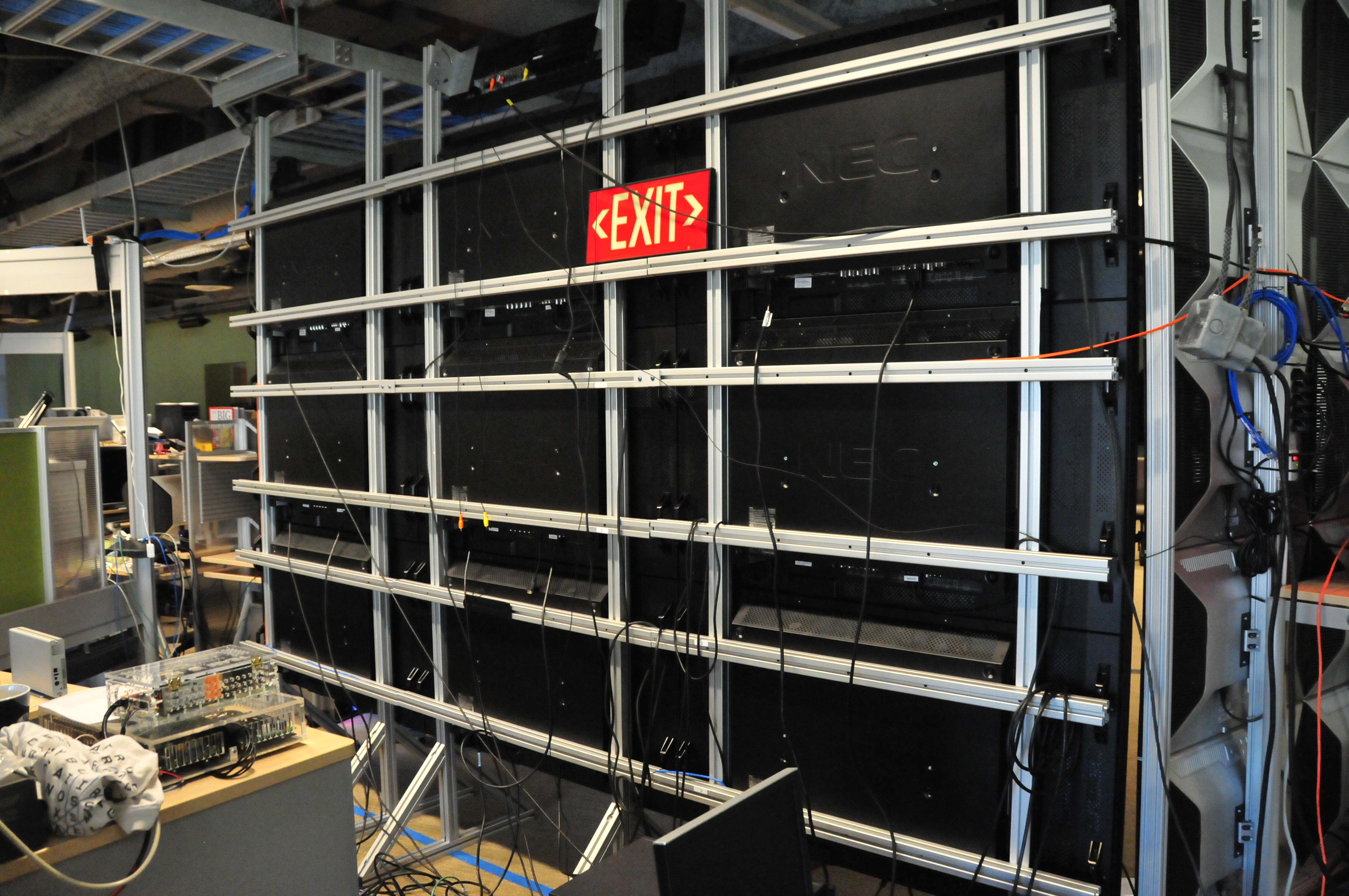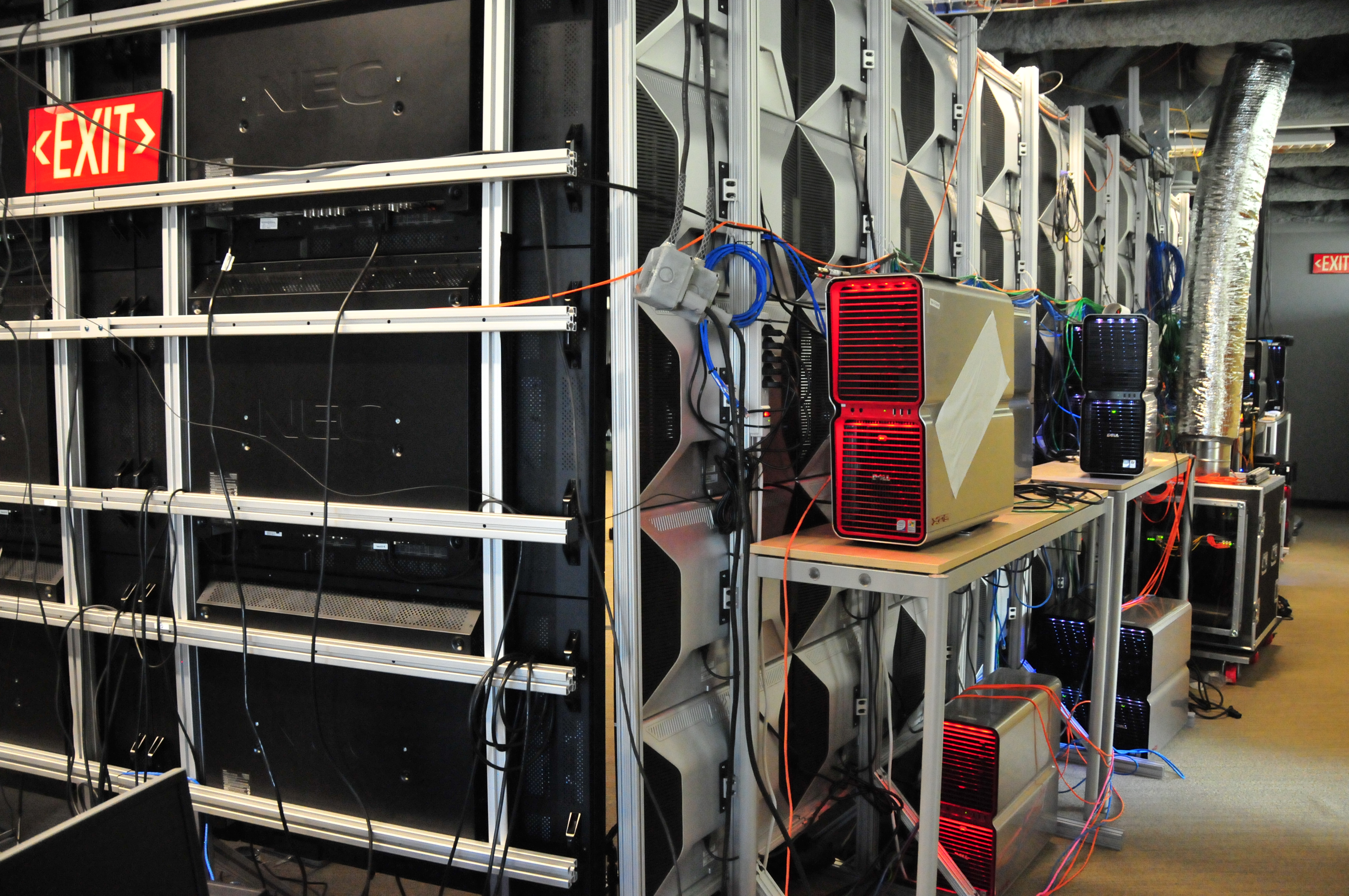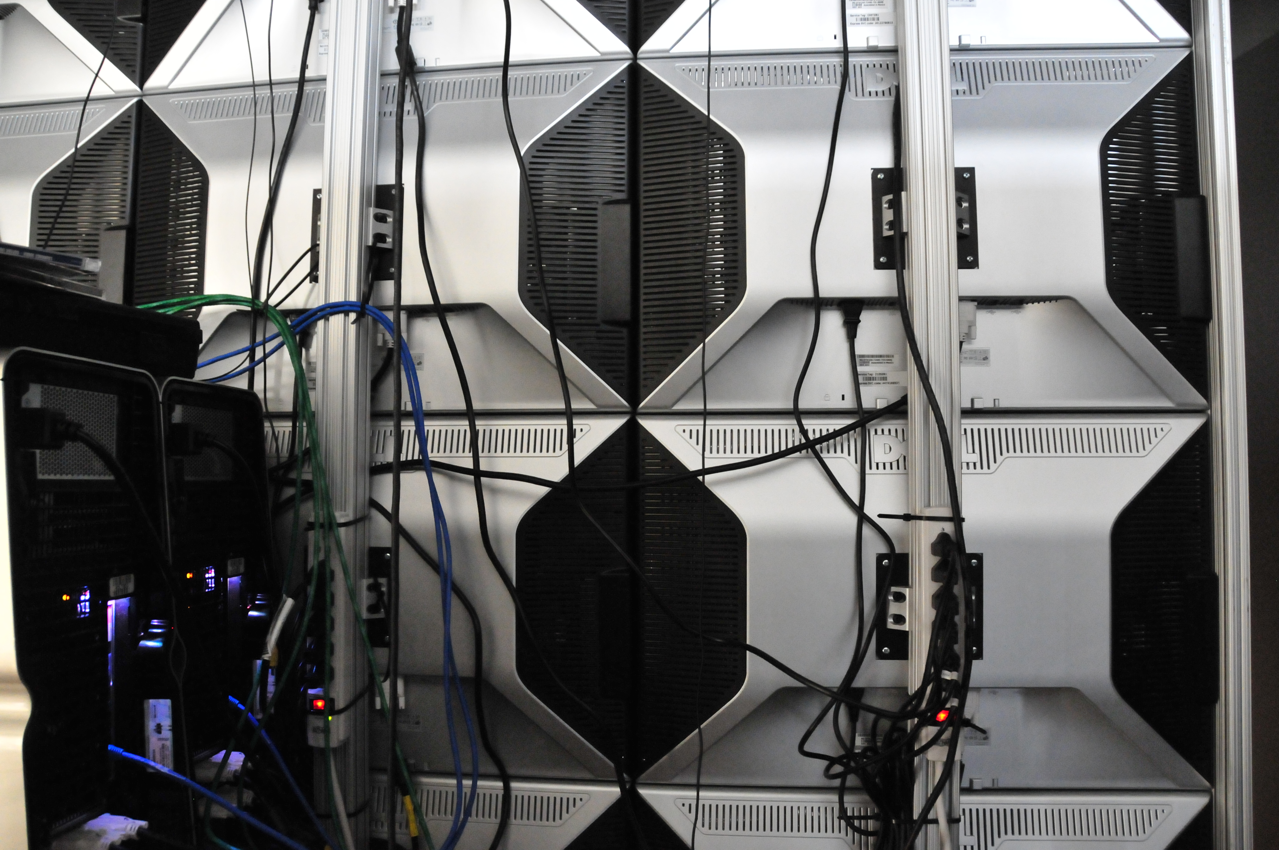 The back of the HiPerSpace wall. The monitors are attached to a fixed structure. [DSC_3350]