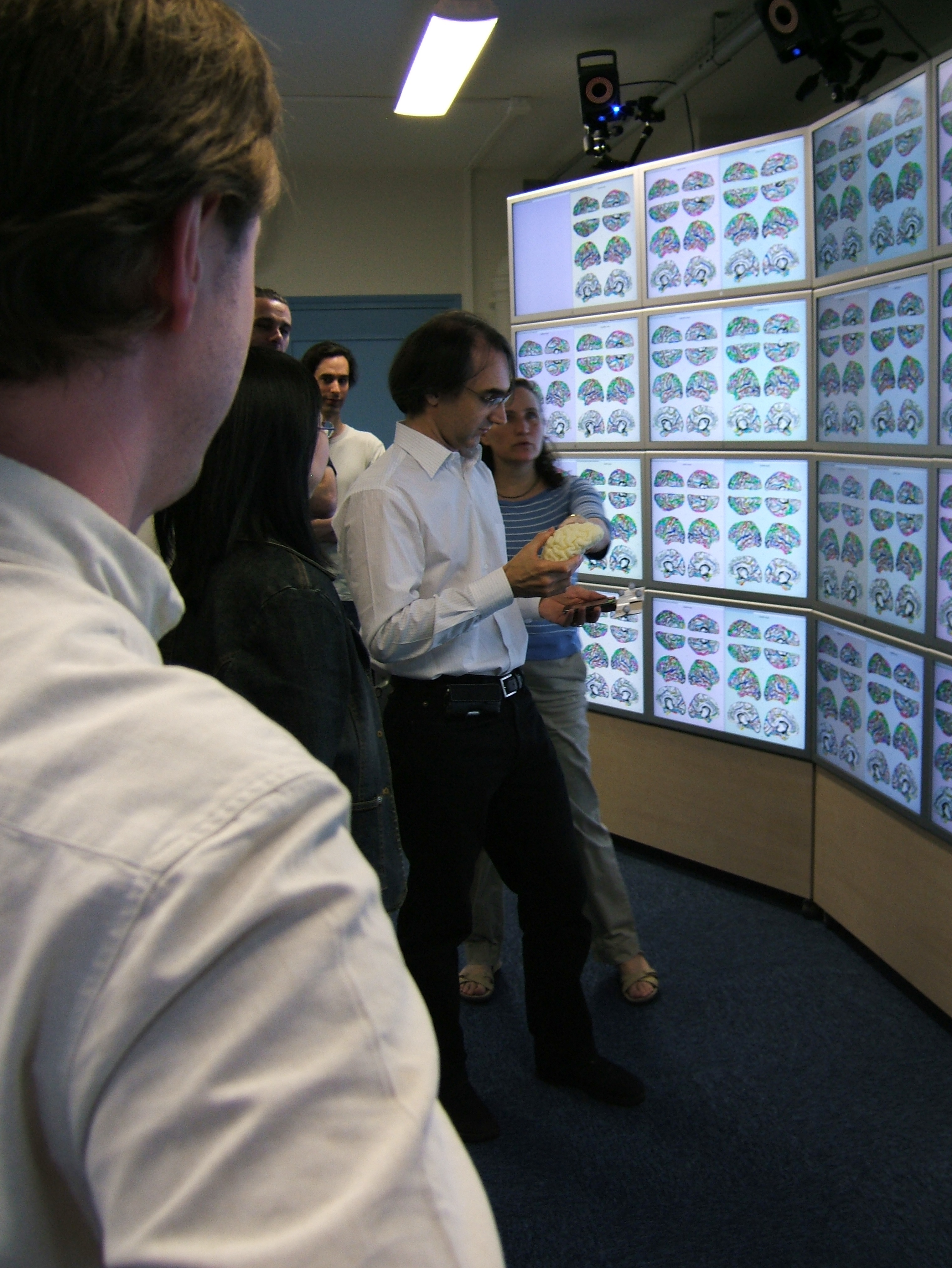 Prototyping session: what about using a physical brain as controller? (It turned out that this particular brain was a 3D print of the brain of one of the scientists!) [DSCF4430]