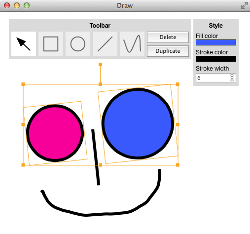 js contienant les libraries qu'on utilisera.(celsius * 1.8) + 32.$(inputSelector).val() pour récupérer ou définir la valeur d'un élément d'entrée. Utilisez parseFloat(string) pour convertir une string en float et isNaN(value) pour vérifier si la valeur a été bien convertie.15.7 doit être affiché au lieu de 15.66666). Math.round(number) et Math.pow(number, power).type au range ou en utilisant jQueryUI sliders. Assurez-vous que tous les éléments d'interface (sont synchronisés).L'objectif de cet exercice est d'ajouter des fonctionnalités manquantes à une application de dessin Web simple.