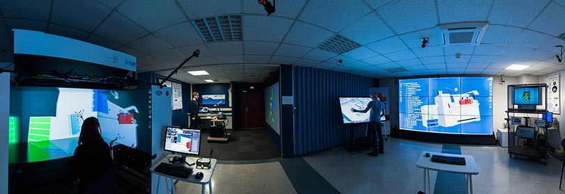 Type: Immersive 5-sided CAVE, 6K Powerwall, Full HD stereoscopic back-projected wall display, 4K 65" Multitouch table, VR/AR HMDs, Video-mapping, Haptic arm.