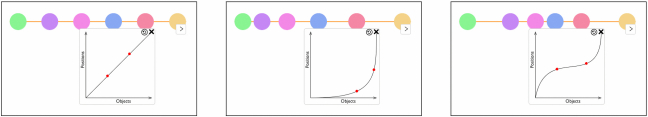 Another use of Reification is the ability to change the distribution function that maps the rank of objects on a guideline into their position. StickyLines can show this mapping as a curve, which can be edited to create a layout where objects are progressively closer or further away from each other (Figure 9).