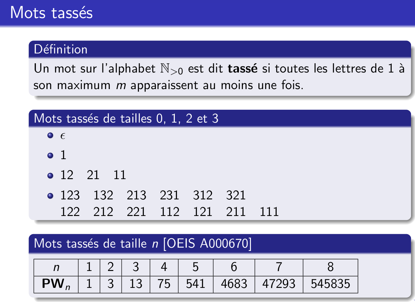 Mon domaine de recherche est la combinatoire algébrique. Je travaille plus particulièrement sur la structure d'Algèbre de Hopf (espace vectoriel muni d'un produit et d'un co-produit) et sur la famille combinatoire des mots tassés. Encore plus précisément, j'ai construit un automorphisme bidendriforme explicite de WQSym (L'algèbre de Hopf indexée par les mots tassés).